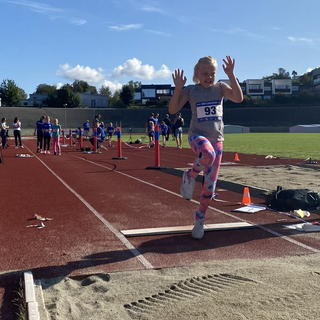 Nye personlige rekorder ble det også på Oscar Djupvik Søreide og Lars Magnus Lyngsgård-Monsen i gutter 10 år. Oscars 36,49 i liten ball var klar ny rekord, og Lars Magnus setter ny rekord på 60 meter hver gang han løper. I klasse jenter 10 deltok Kine Eriksen (bildet over), og også hun fikk med seg to personlige rekorder hjem.